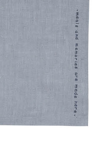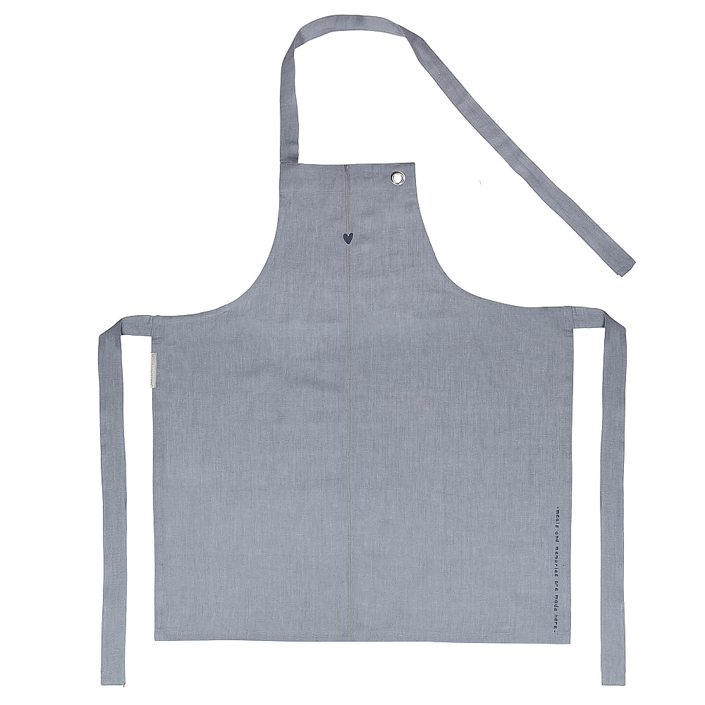 Nadčasové provední bavlněné zástěry v šedém provedení ze 100% bavlny s nápisem "meals and memories are made here" - zde vznikají jídla a vzpomínky.
