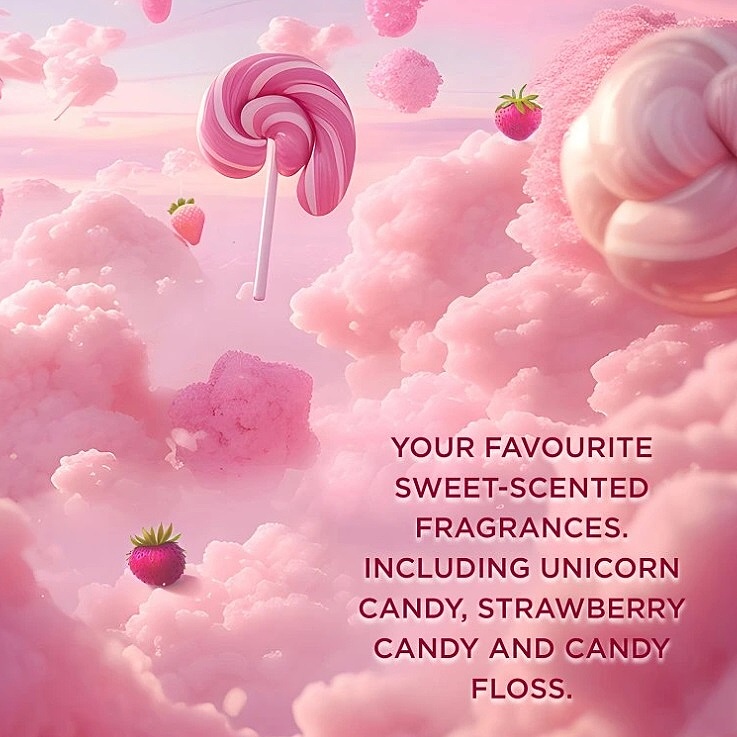 Kolekce Beauticology je hravá, zábavná, kouzelná a barevná. Design s holografickými detaily, pastelovými barvami a magickými motivy tvoří společně s rozmanitými vůněmi cukrovinek perfektní kolekci pro malé či větší milovníky jednorožců, kteří mají chuť na sladké!