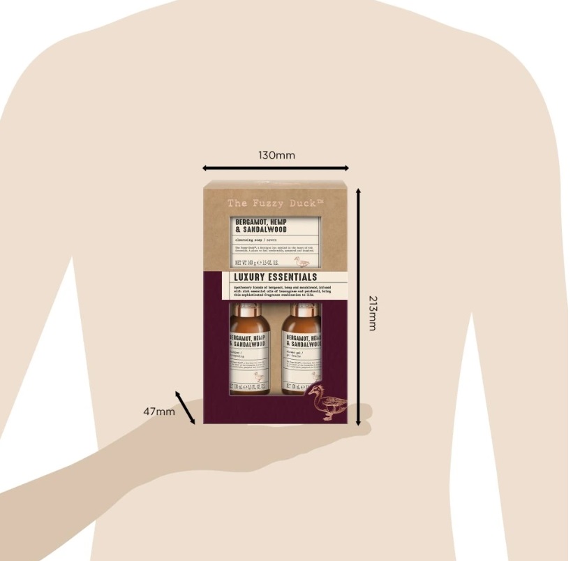 V prémiové kolekci péče pro muže The Fuzzy Duck se snoubí divoká krása přírody s gentlemanskou elegancí a sofistikovaným vzhledem. Rustikální estetika inspirovaná přírodními materiály kombinuje vínové a přírodní tóny s bronzovými prvky a s etiketami v typickém lékárnickém stylu. Vytvořeno s jedinečnou vůní, která spojuje hřejivé konopí s jemnými tóny santalového dřeva a špetkou energizujícího bergamotu.