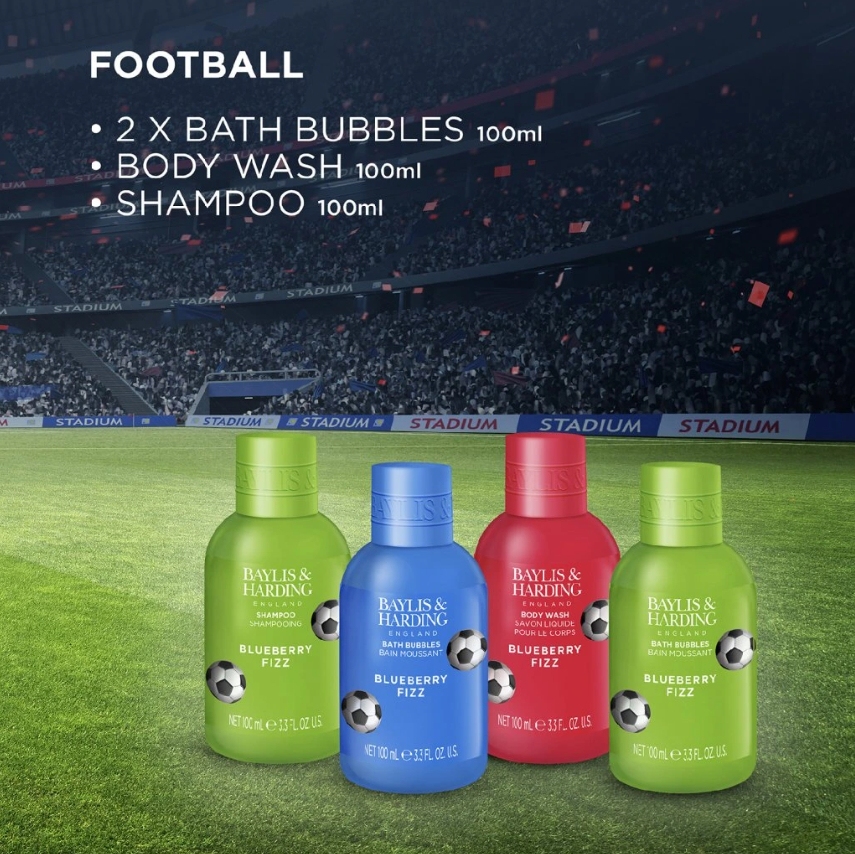 Osvěžte a provoňte tělo a vlasy po náročném zápase či tréninku sprchovým gelem, šamponem nebo koupelovou pěnou! Pokožku celého těla zahalte do krásné vůně borůvek a ostružin doplněných tóny santalového dřeva. Tato praktická sada pečujících přípravků nesmí chybět žádnému malému fotbalistovi, který jezdí s týmem na zápasy!