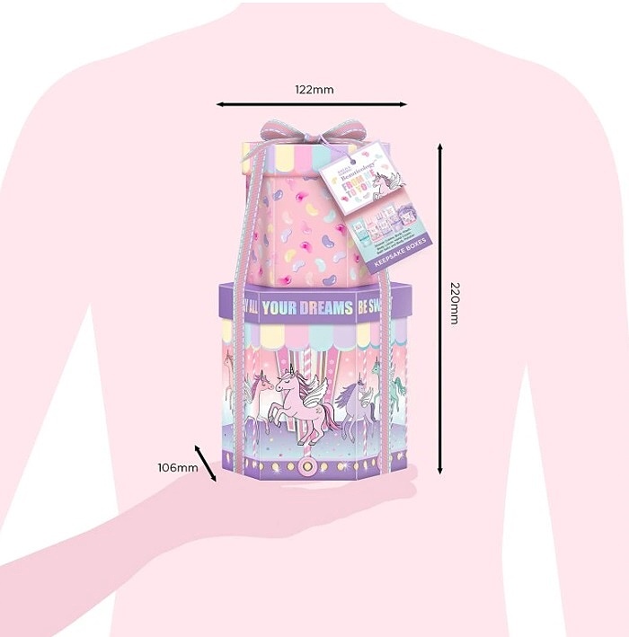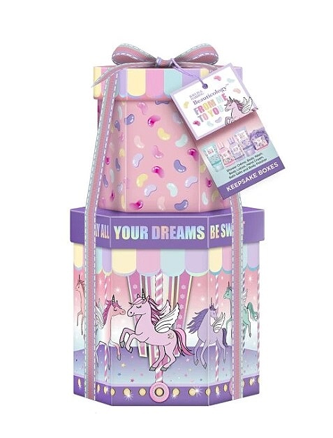 Tato nádherná sada produktů péče o tělo je skvělým dárkem pro malé i větší slečny, které milují jednorožce. Darujte jedinečný zážitek pomocí této exkluzivní kolekce produktů s vůní cukrovinek, jahodových bonbonů a cukrové vaty.