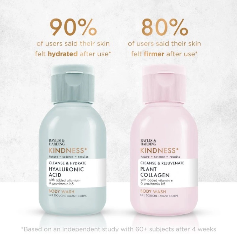 Hýčkejte svou pokožku každý den jinak – s pečlivě sestavenou sadou sprchových gelů Baylis & Harding, která spojuje vědu, přírodu a výsledky. Čtyři mini sprchové gely s vysoce účinnými složkami, jako je kyselina hyaluronová, vitamin C, niacinamid, kyselina salicylová a rostlinný kolagen, nabízejí cílenou péči pro hydrataci, zjemnění, rozjasnění a obnovu pokožky.
