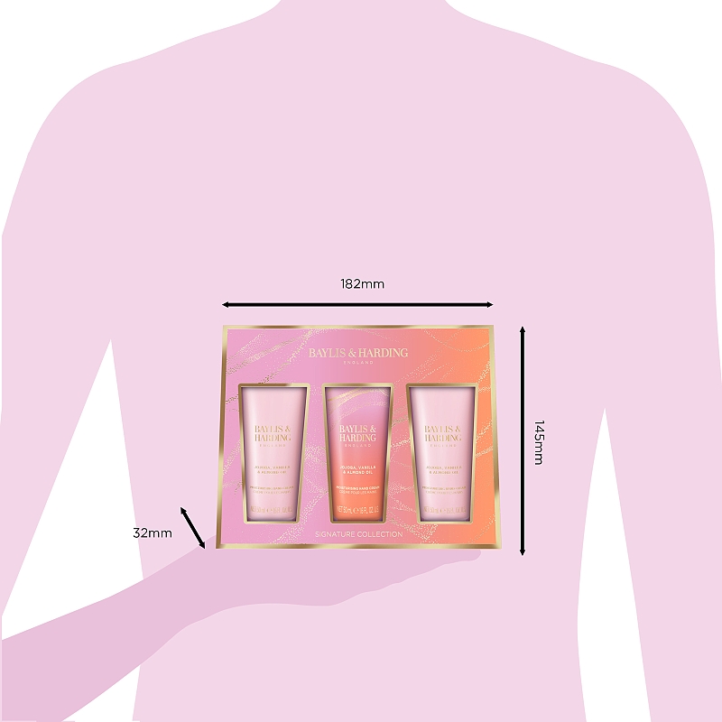 Luxusní kolekce Jojoba, Vanilla & Almond Oil je prezentována metalickými, ombré odstíny pastelově růžové a broskvové barvy s explozí třpytivých detailů, které společně s holografickým balícím papírem propůjčují kolekci ojedinělý vzhled inspirující se krásou poznání astrologie. Kolekci provází jemná a smyslná vůně vanilky, mandlového oleje a sladké jojoby.