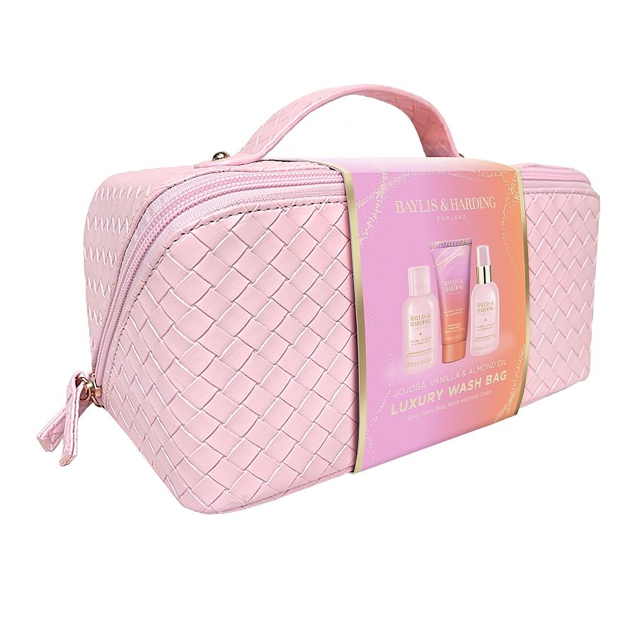 Dopřejte si péči na cestách s touto elegantní kosmetickou taštičkou od Baylis & Harding, která v sobě ukrývá tři nepostradatelné produkty: tělový sprej, sprchový gel a krém na ruce s jemnou vůní jojoby, vanilky a mandlového oleje. Přináší pocit čistoty, hydratace a svěžesti, kdykoli během dne. Ideální jako dárek nebo jako stylový doplněk do vašeho cestovního zavazadla.