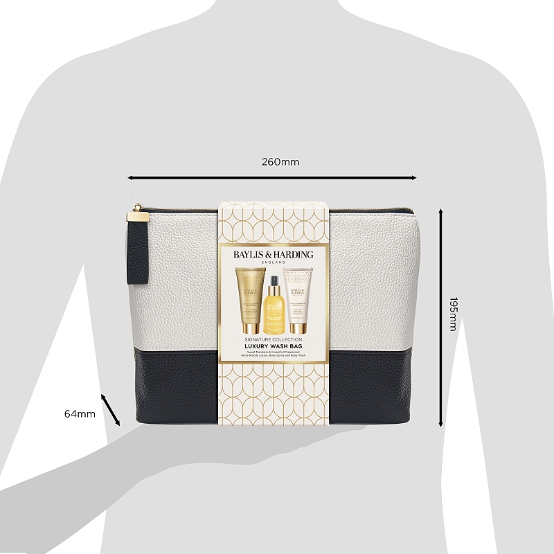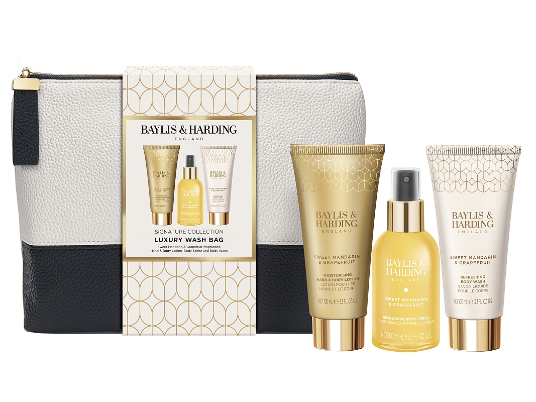 Nádherná kosmetická taška ve černo-bílé barvě se zlatým zipem a třemi kosmetickými produkty, kterým neodoláte. Vůně sladké mandarinky a hořkého grepu jsou skvělou variantou pro relaxaci.