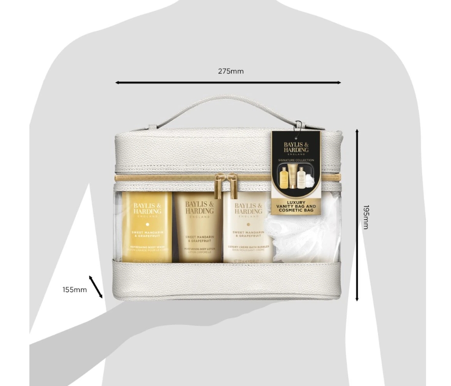Rozmazlujte pokožku celého těla luxusními produkty během každodenního mycího rituálu s vůní mandarinky, jasmínu a grapefruitu! Užijte si chvíle relaxace s touto sadou pečujících produktů. Pěna do koupele a sprchový gel jemně čistí pokožku těla, zatímco tělové mléko dodá pokožce potřebnou hydrataci a výživu s výsledkem hladké a nádherně provoněné pokožky. V sadě nechybí ani praktická tělová houbička.