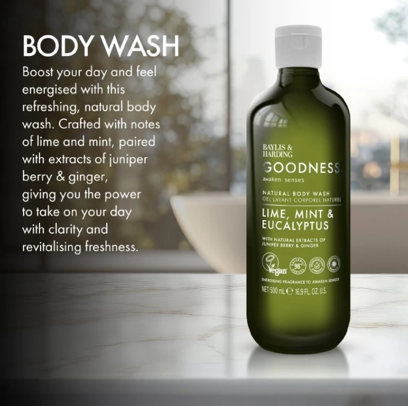 Začněte den s dávkou svěžesti a energie díky přírodnímu sprchovému gelu Baylis & Harding. Spojení svěží limetky, mandarinky, máty a eukalyptu s hřejivými tóny cedrového dřeva a geránia, obohacené o přírodní extrakty z jalovce a zázvoru, přináší povzbuzení pro tělo i mysl a dodá energii na celý den.