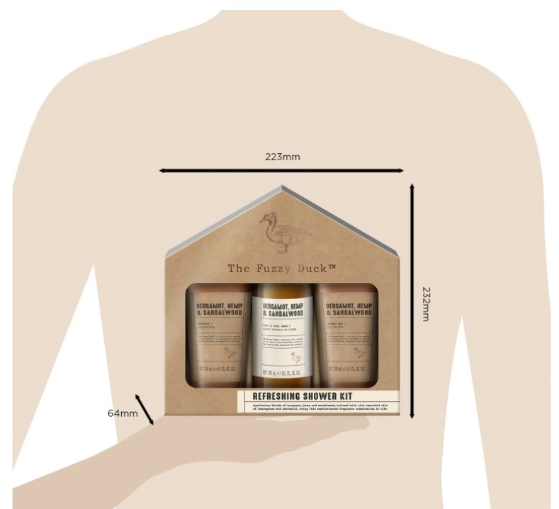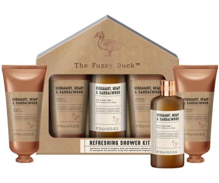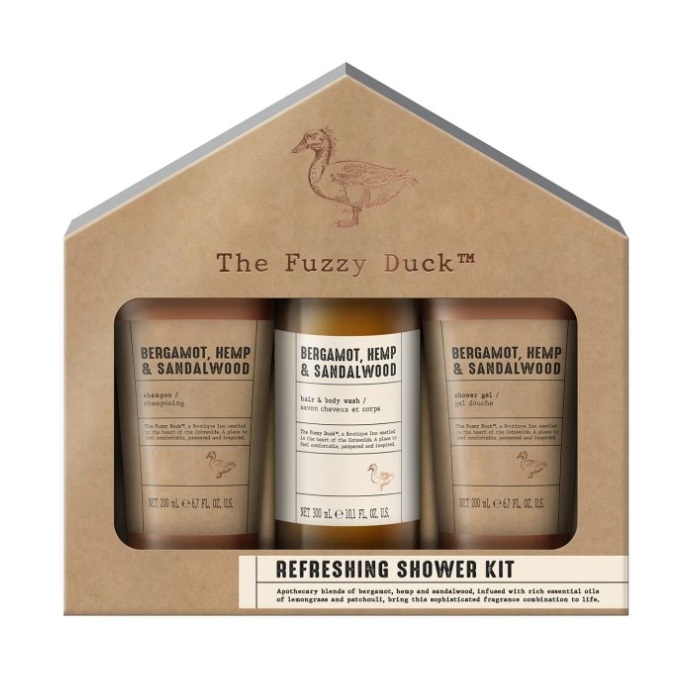 V prémiové kolekci péče pro muže The Fuzzy Duck se snoubí divoká krása přírody s gentlemanskou elegancí a sofistikovaným vzhledem. Rustikální estetika inspirovaná přírodními materiály kombinuje šedé a měděné tóny s etiketami v typickém lékárnickém stylu. Vytvořeno s jedinečnou vůní, která spojuje hřejivé konopí s jemnými tóny santalového dřeva a špetkou energizujícího bergamotu.