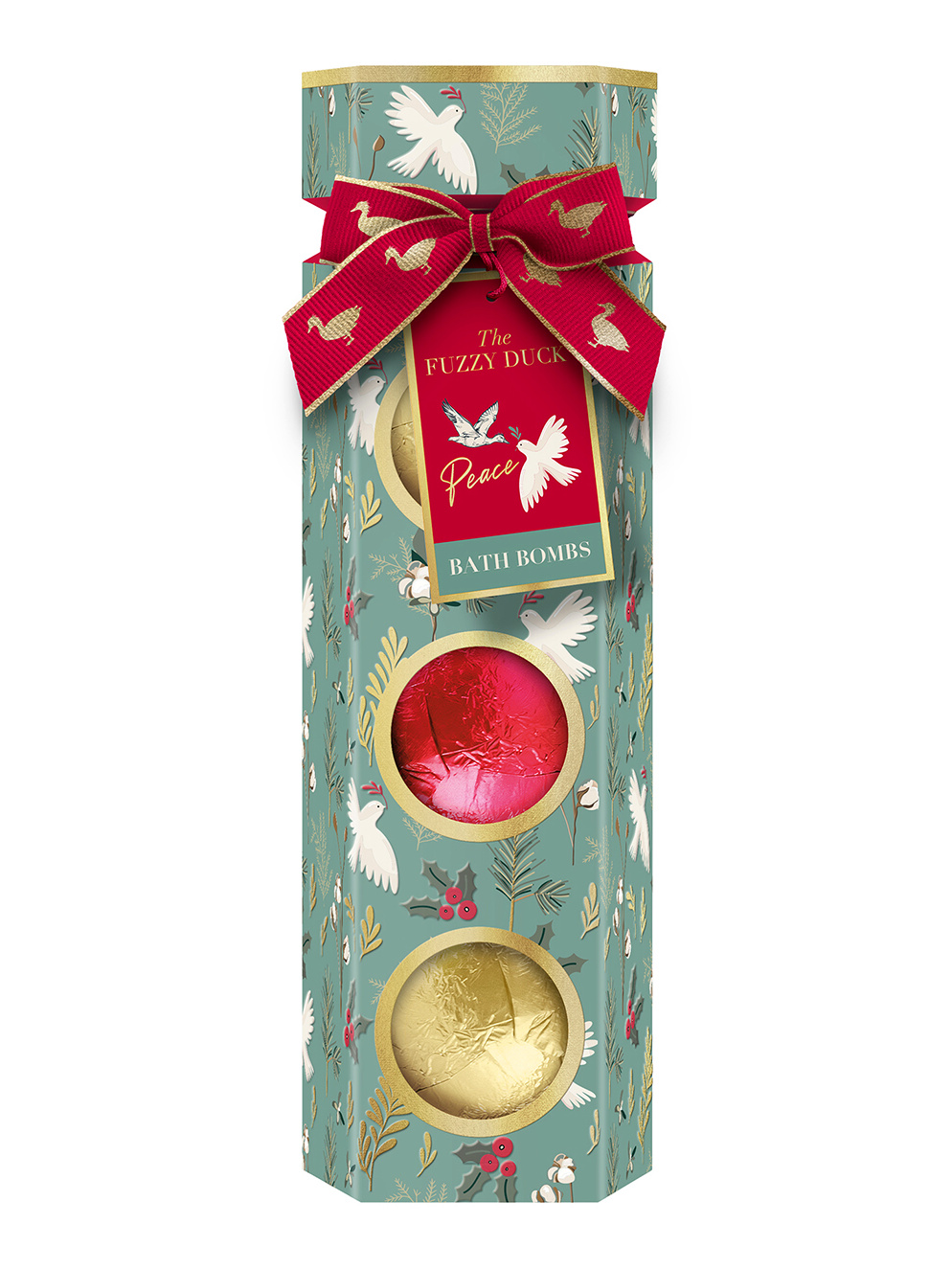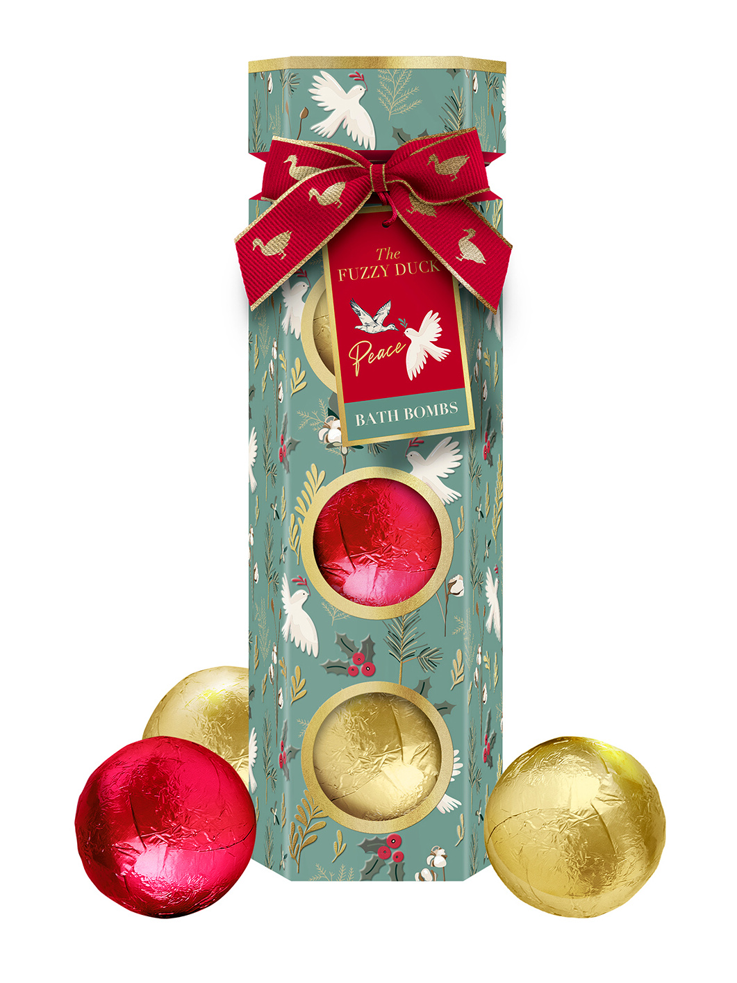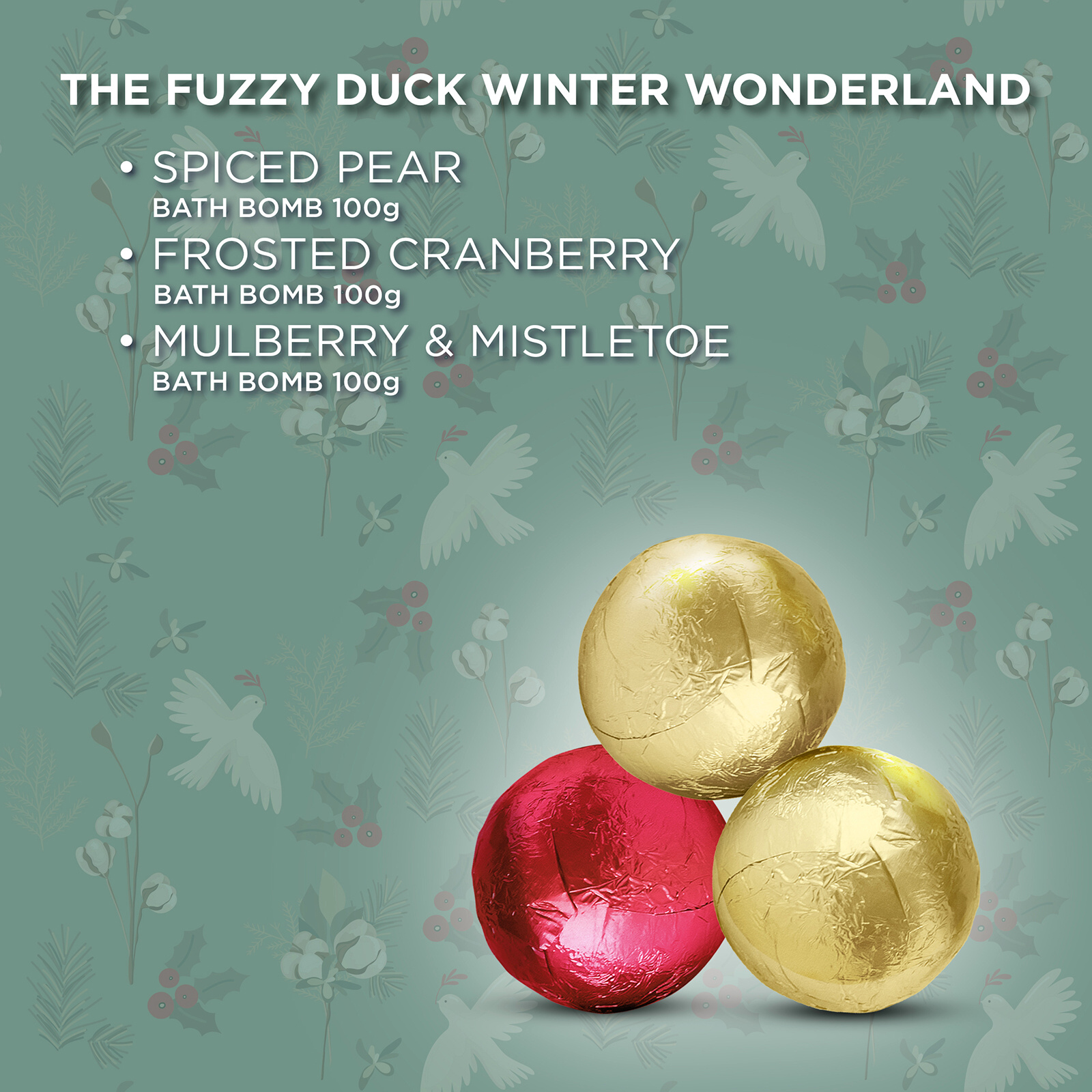 Luxusní dárková sada šumivých koulí z kolekce Zimní království s vůní kořeněné hrušky, ojíněných brusinek, moruše a jmelí.