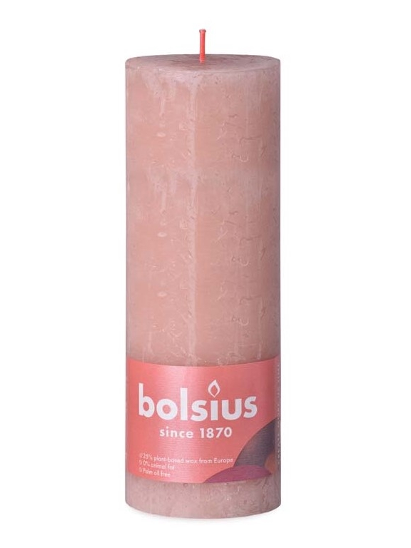 • detail Bolsius Rustic Shine Válec 68x190mm Misty Pink, růžová svíčka