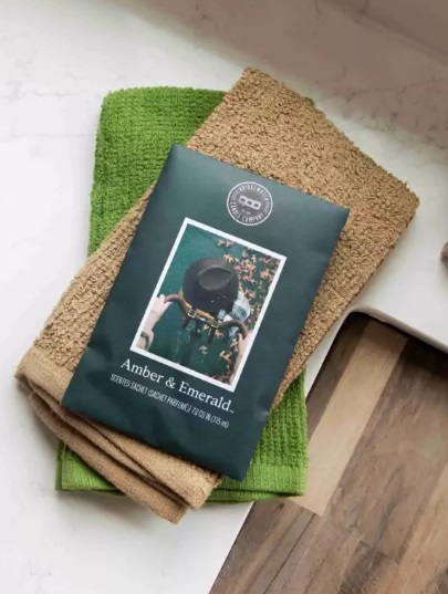 Zažijte esenci horského útočiště v první podzimní den s voňavým příběhem grapefruitu, pelargónie a vetiveru, který vás provede na kole po klikaté stezce obklopené svěžími, smaragdově zelenými kopci. Sáček Amber & Emerald má několik možností využití. Můžete jej uložit do šatní skříně a provonět své prádlo, vhodný též do kabelky, auta a podobně. Vysypete-li jeho obsah na podlahu a následně vysajete.vysavačem, budete si tuto vůni připomínat při každém dalším úklidu.