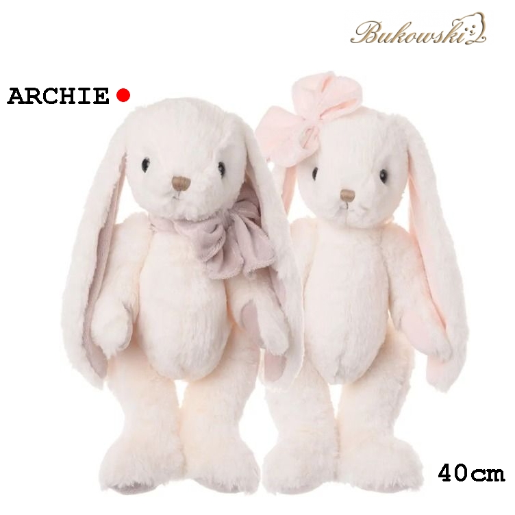 Bukowski Zajíček ARCHIE s béžovou mašlí, plyšák 40 cm / 1ks