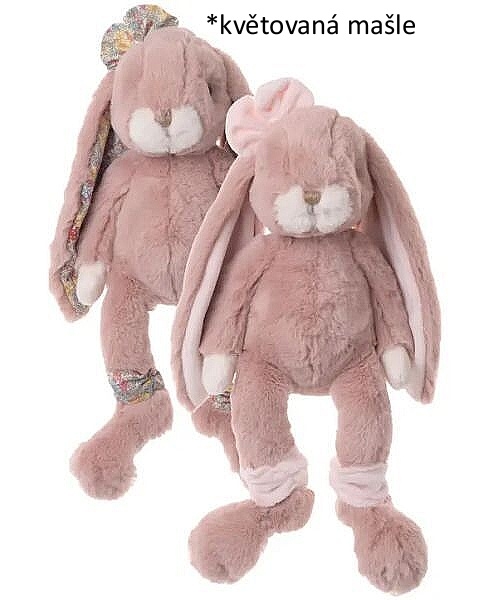 Heboučký plyšák - zajíček Strawberry Flower Power s květinovou mašlí, velikosti 35 cm. Na fotografii pár zajíčků, cena je za jeden kus.