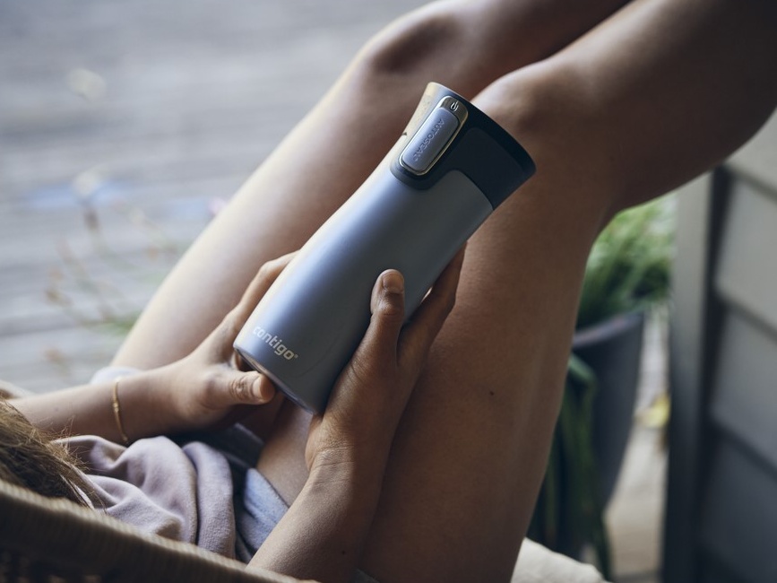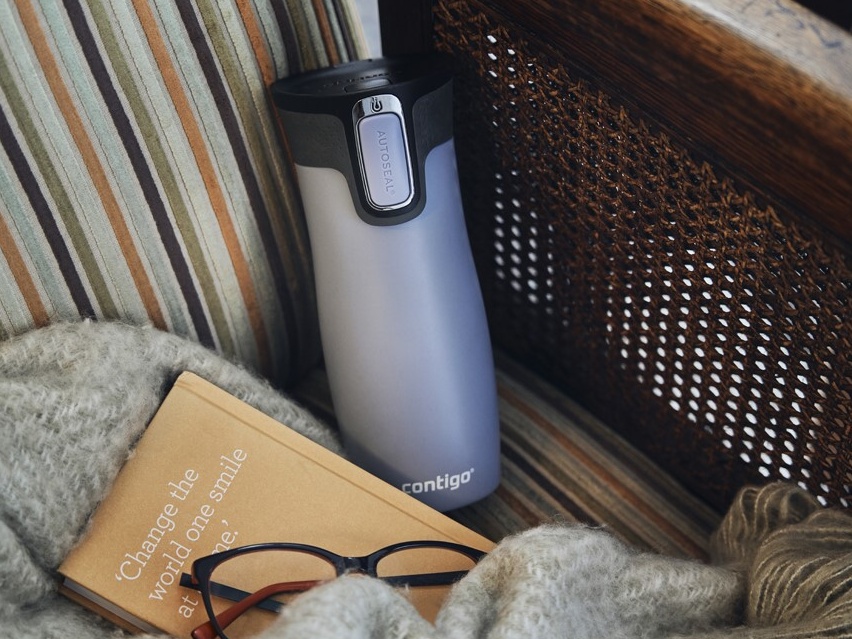 Termohrnek s technologií AUTOSEAL, která poskytuje jistotu, že se na cestách nerozlije a nevyteče.