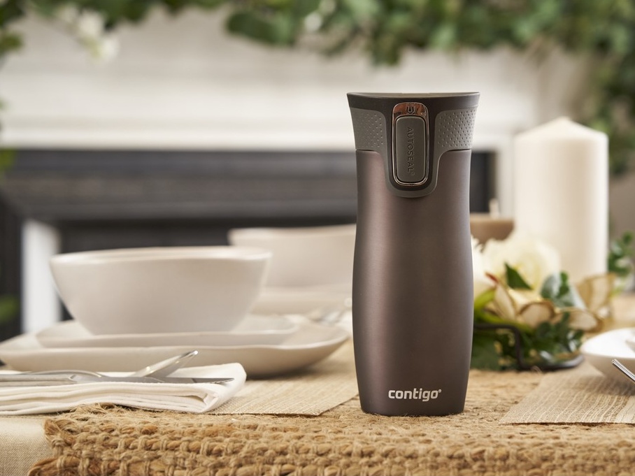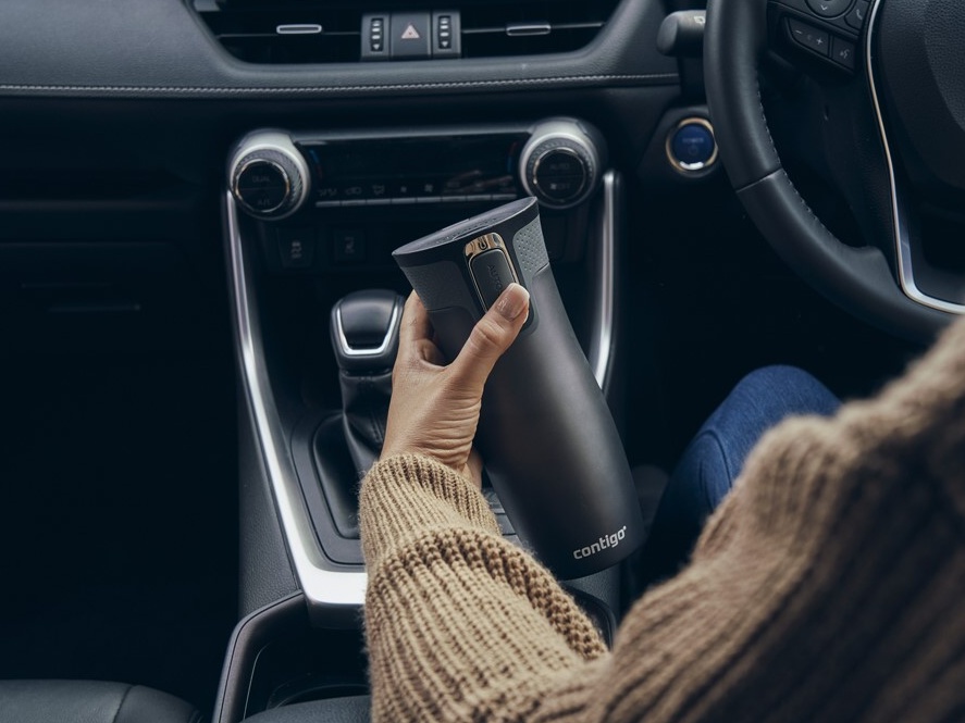 Termohrnek s technologií AUTOSEAL, která poskytuje jistotu, že se na cestách nerozlije a nevyteče.
