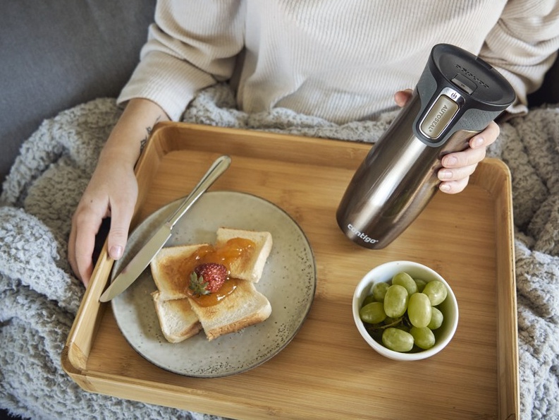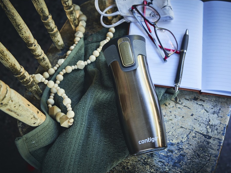 Termohrnek s technologií AUTOSEAL, která poskytuje jistotu, že se na cestách nerozlije a nevyteče.