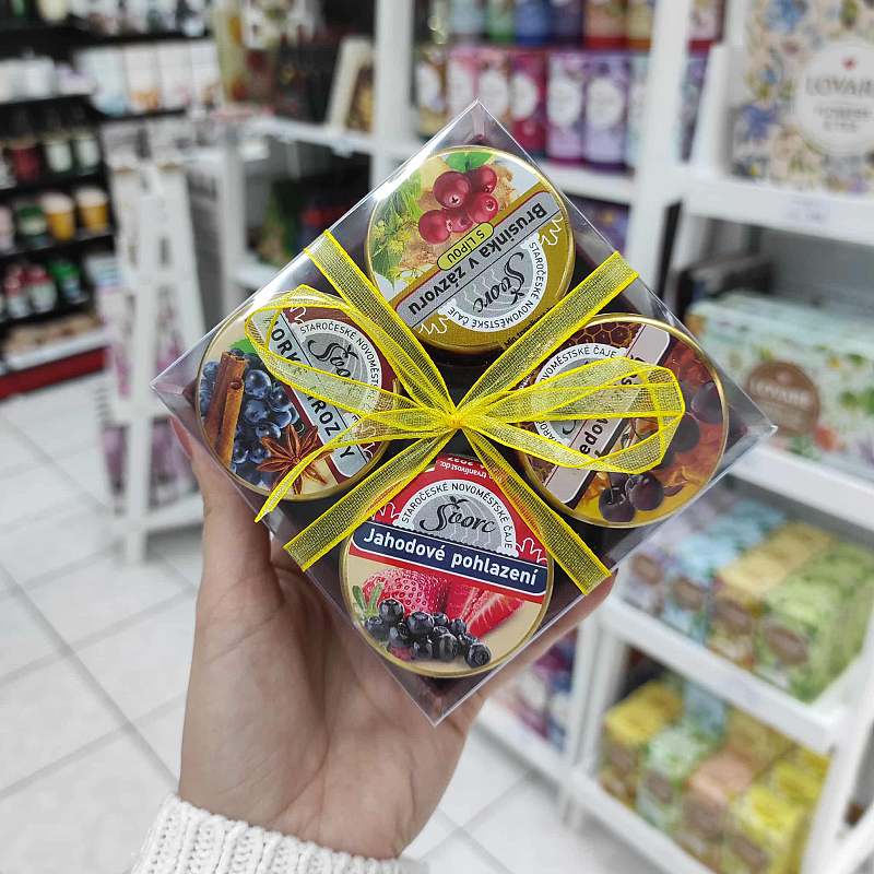 Nádherná kolekce čtyř pečených čajů v mixu od české firmy Švorc z Opočna, tzv. Staročeské novoměstské čaje.