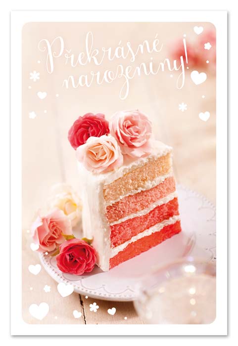 Ditipo Blahopřání I - PŘEKRÁSNÉ NAROZENINY, dort s růžemi