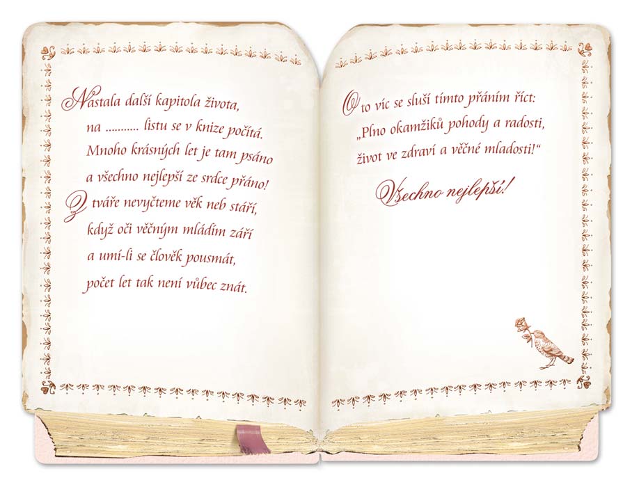 Klasické blahopřání ve tvaru knihy i uvnitř je to podobné jako kniha.