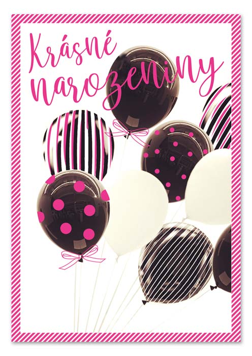 Text na titulní straně přání: KRÁSNÉ NAROZENINY