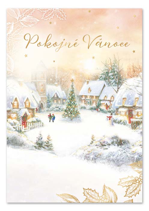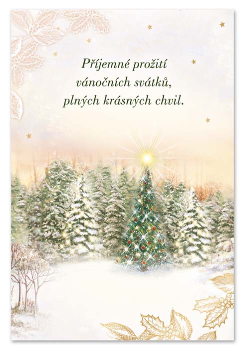 Vánoční hrací přání s efektem svítící hvězdy na vánočním stromečku a melodií písně Alžbětínská serenáda.