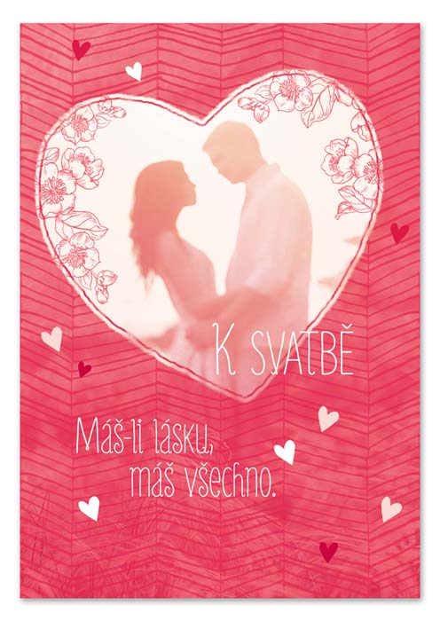 Text na titulní straně přání: K SVATBĚ - MÁŠ-LI LÁSKU, MÁŠ VŠECHNO