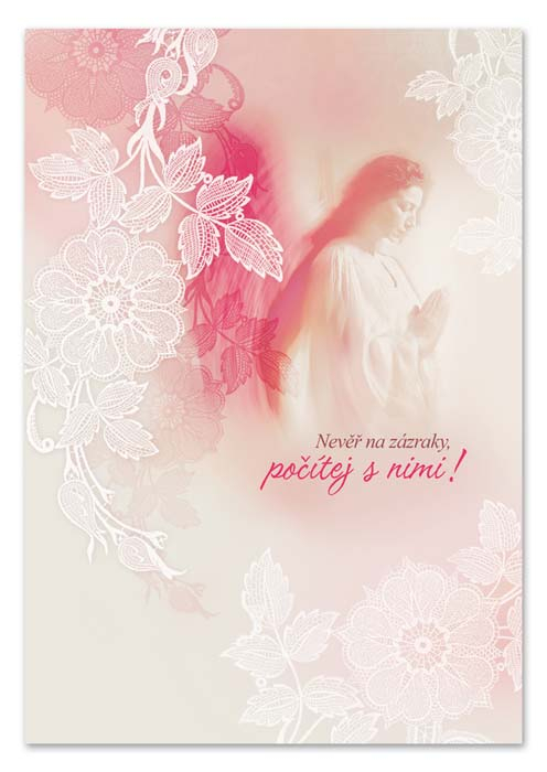 Krásné jemné přáníčko s textem na přední straně: NEVĚŘ NA ZáZRAKY, POČíTEJ S NIMI!