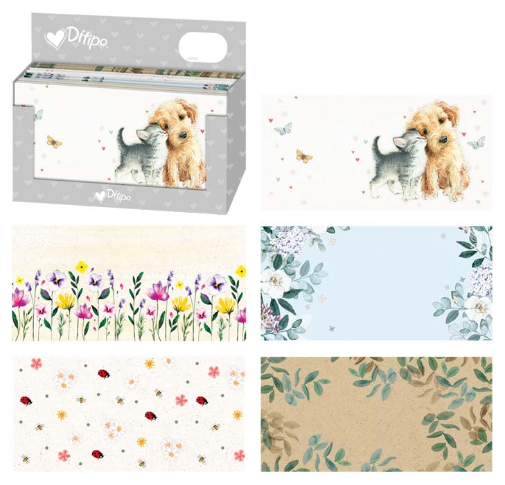 Rozměr: 110 x 220 mm, mix 5 motivů v krabičce, 100 ks