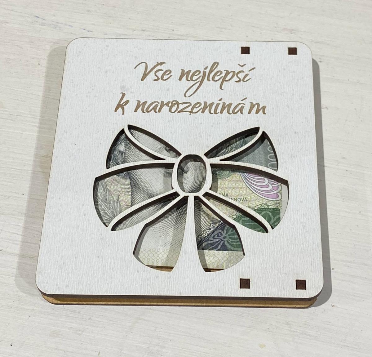 Dřevěná kapsa na peníze - VŠE NEJLEPŠÍ K NAROZENINÁM, 10x10cm