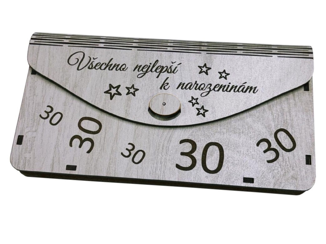 • detail Dřevěná obálka na peníze - Všechno nejlepší 30 let, 20x10cm