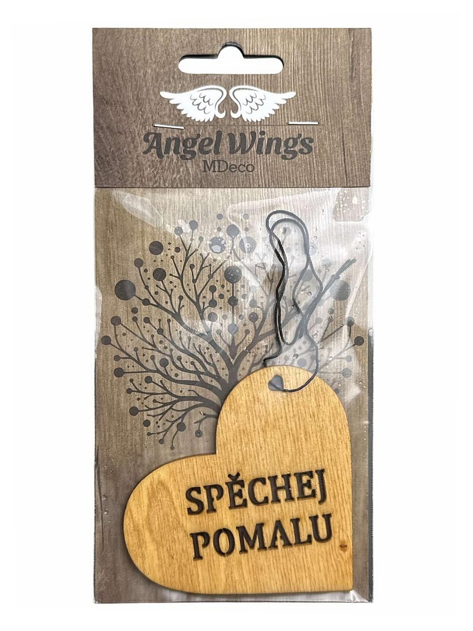 Dřevěná vůně do auta Angel Wings - SPĚCHEJ POMALU, srdce