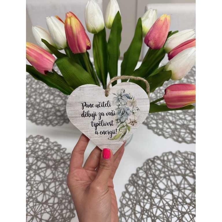 Dřevěné dekorační srdce pro pana učitele – Pane učiteli, děkuji za vaši energii a trpělivost. Šířka dřevěného srdce je 120 mm, tloušťka 10 mm. Milý dárek pro pana učitele.