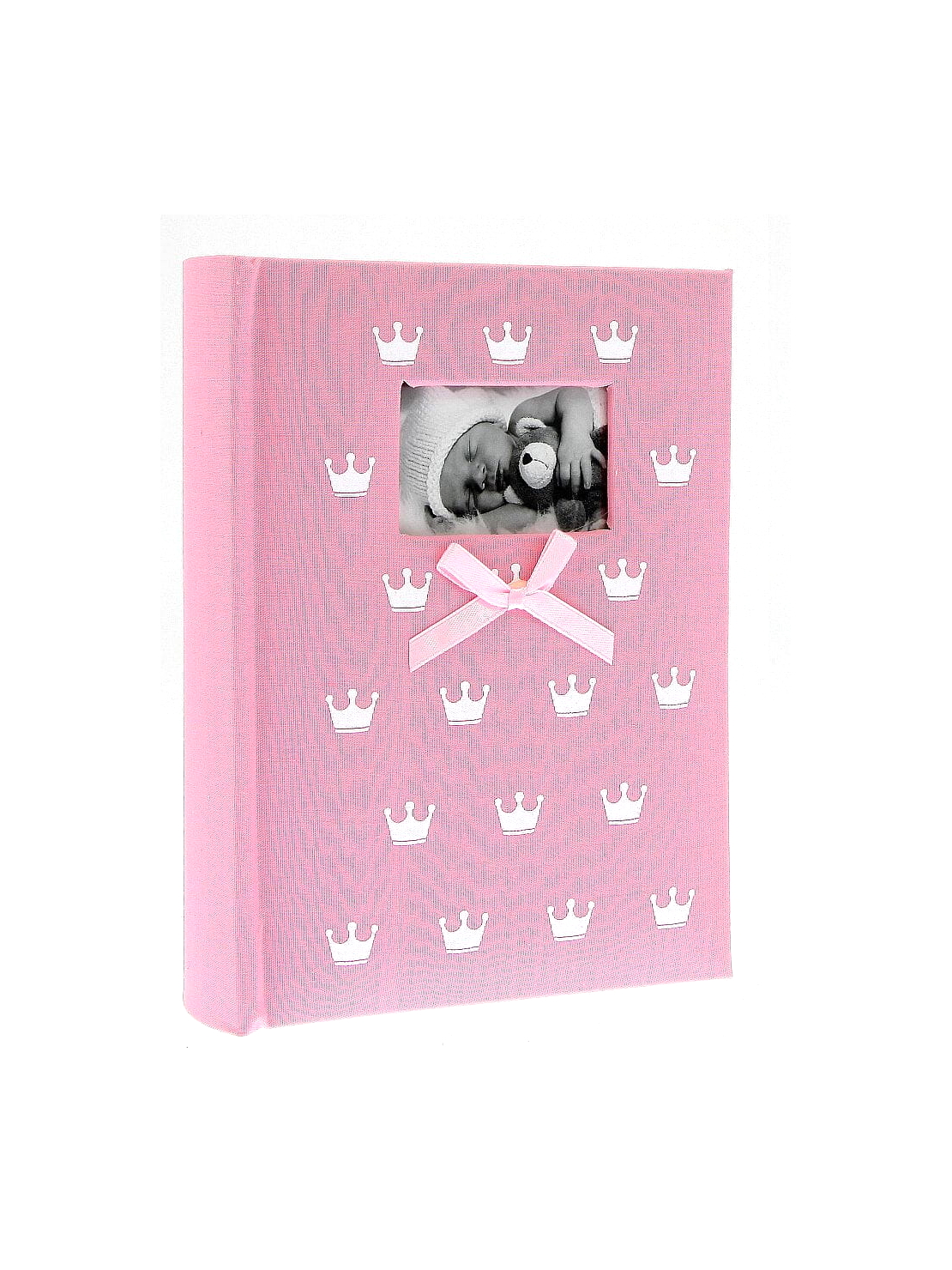 Luxusní látkové album na 100 fotografií 10x15, šitá kniha, látkové desky s bílým potiskem a látkovou stuhou. Bez popisky.