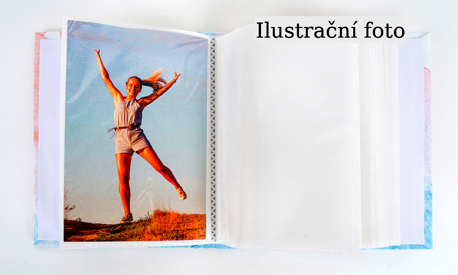 Fotoalbum na 100 fotografií formátu 10x15, jedna fotografie na stránce, bez možnosti popisky, pevná vazba, PVC bílé listy.