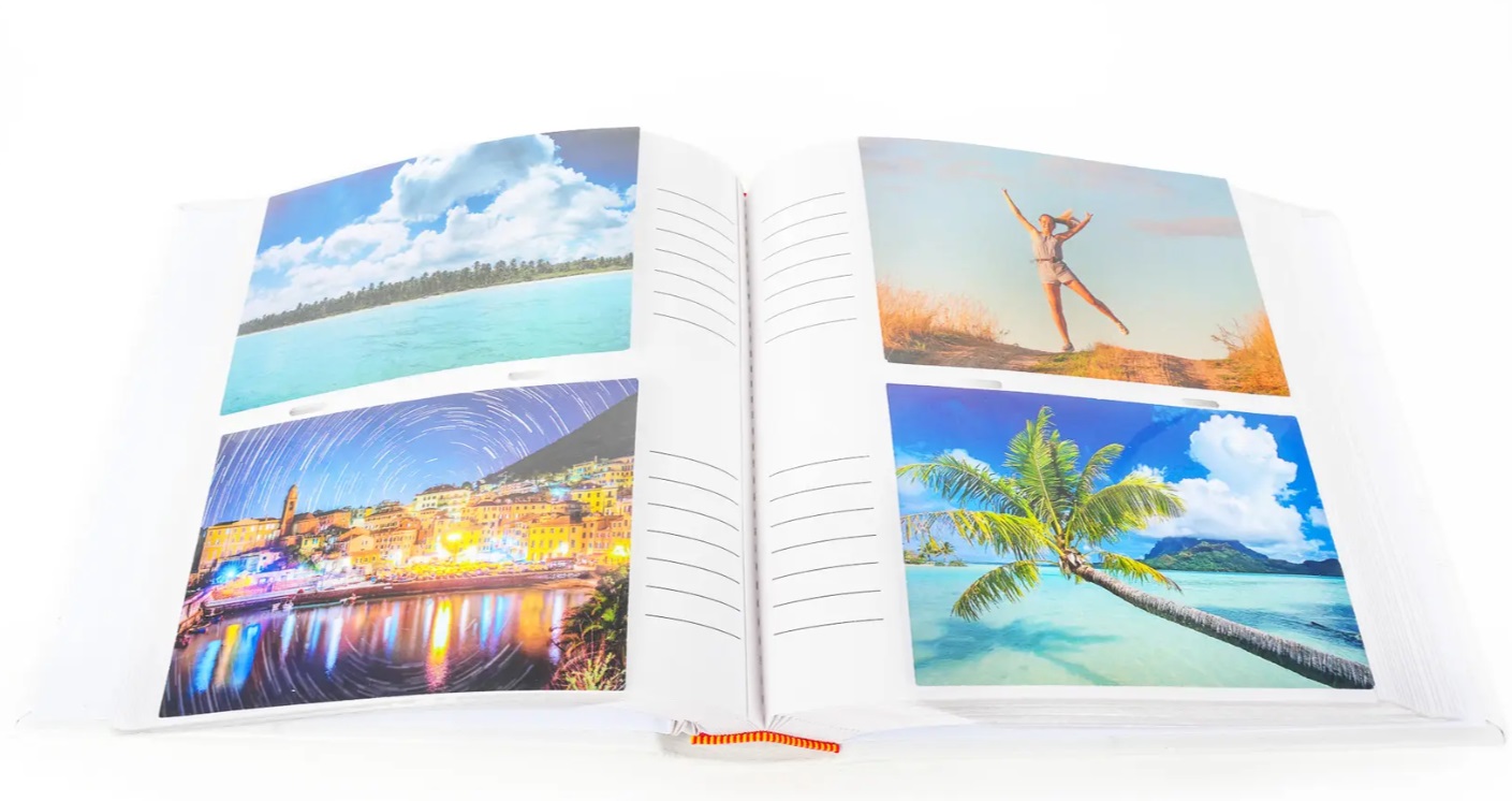Nádherné koženkové fotoalbum na 200 fotografií 10x15, šitá kniha, dvě fotografie nad sebou, popiska u hřbetu, kterou můžete, ale i nemusíte využít a i tak bude fotoalbum vypadat skvěle.