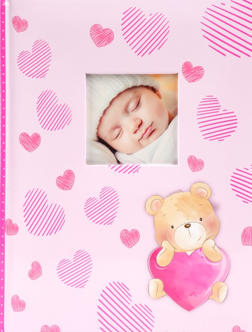Nádhrené dětské fotoalbum na 300 fotografií 10x15, dvě fotografie nad sebou, popiska mezi fotografiemi. Šitá kniha. Možnost vložit vlastní foto nebo text na titulní stranu (cca 7x7cm)