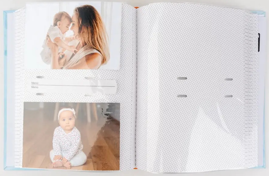 Fotoalbum zasunovací na 300 fotografií 10x15cm, šitá vazba, dvě fotografie na stránce, popiska mezi fotografiemi. Možnost vložit vlastní foto na titulní stranu 6 x 6 cm.