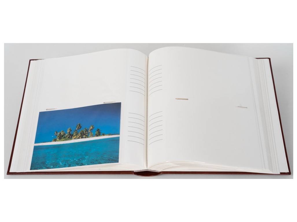Luxusní koženkové fotoalbum na 200 fotografií 13x18, šitá kniha, dvě fotografie nad sebou, popiska ze strany.