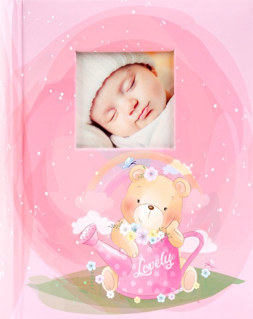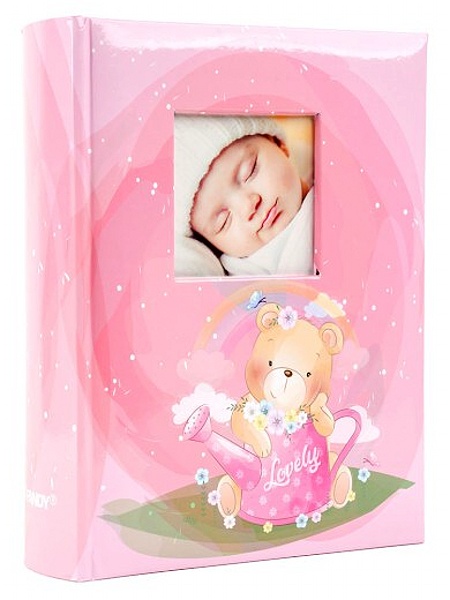 Dětské zasunovací fotoalbum s šitou vazbou na 300 fotografií 9 x 13 cm dvě fotografie nad sebou, popiska mezi fotografiemi, možnost vložit vlastní foto nebo text na titulní stranu alba (7x7cm.)