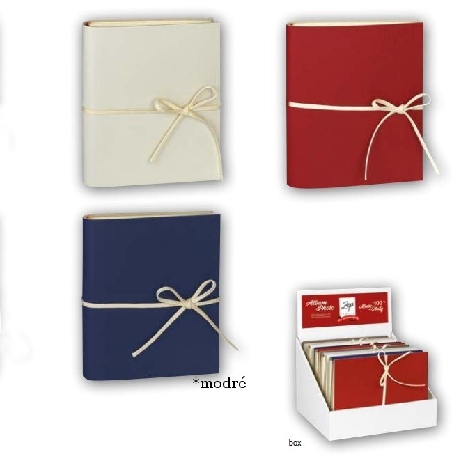 Klasické kapesní fotoalbum se 14 listy / 28 stranami, šitá vazba, měkké koženkové desky se stuhou.