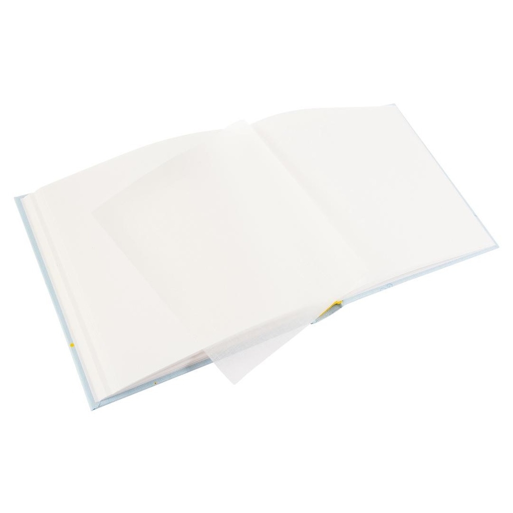 Klasické dětské album o rozměru 30 x 31, počet stran 60, bílé listy proložené pergamenem, šitá vazba, fotografie lze vkládat pomocí fotorůžků, podlepek, popř. fotolepidla. Kolekce Turnovsky. Desky s perforovaným zlatým tiskem.