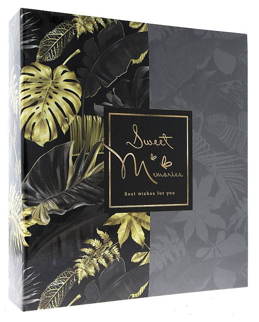 Samolepicí fotoalbum s kroužkovou vazbou (ring vazbou), 50 listů - 100 stran. Vnitřní listy mají zlaté okraje.