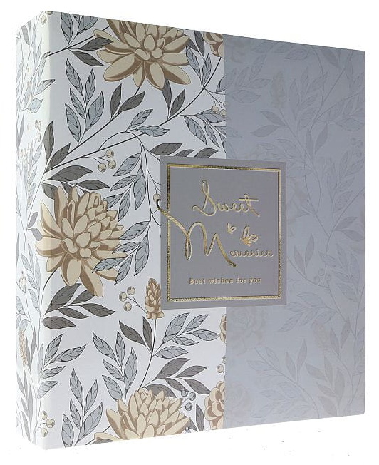 Samolepicí fotoalbum s kroužkovou vazbou (ring vazbou), 50 listů - 100 stran. Vnitřní listy mají zlaté okraje.