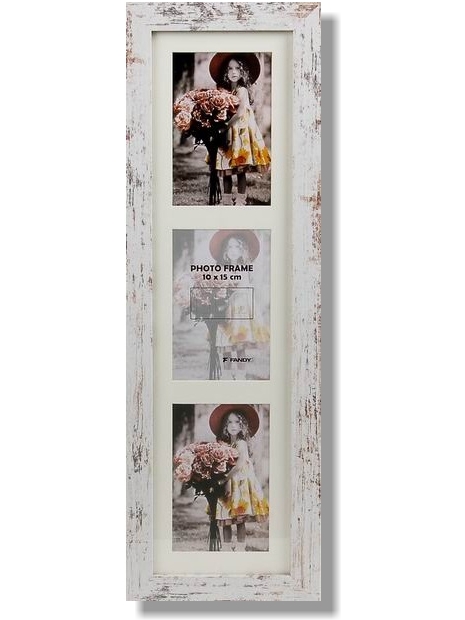 Dřevěný fotorámeček se skleněnou výplní na 3 foto 10 x 15 cm, rozměr rámečku 18,6 x 56,6 cm, k zavěšení vertikálně i horizontálně