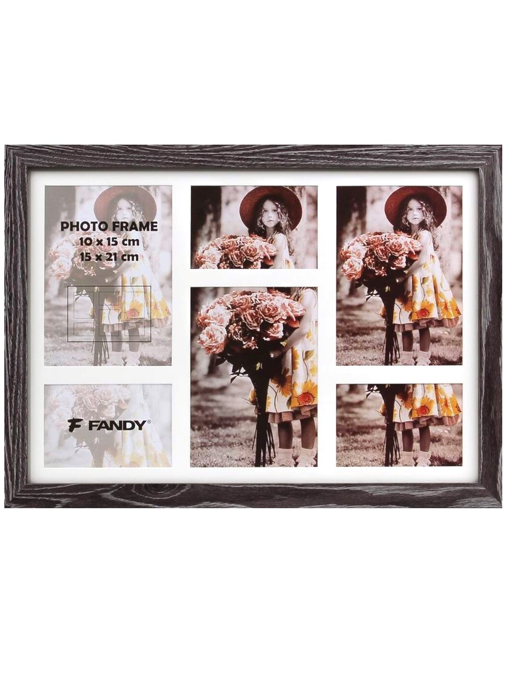 • detail Fotogalerie NARVIK 6x foto GALLERY 05 3x 10x15, 3x 15x21, tm. hnědý melír, dřevo