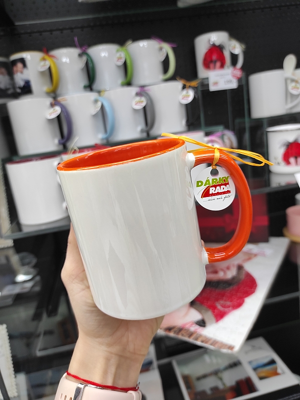 Kvalitní hrneček o objemu 300 ml - perfektní na ranní kávu nebo čaj, který má barevný vnitřek i ouško. Vytvořte unikátní dárek pro sebe, své blízké, učitele nebo třeba kolegu z práce. Vámi vybranou fotografii / obrázek / logo lze vytisknout z obou stran - proto je hrnek vhodný pro leváky i praváky. Hrnek má klasickou velikost - průměr 82 mm / výška 98 mm.