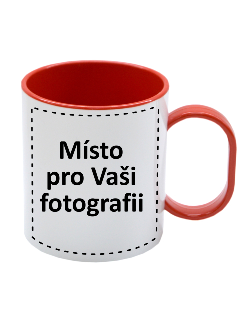 • náhled Fotohrnek PLASTOVÝ červeno-bílý 1x foto 300ml