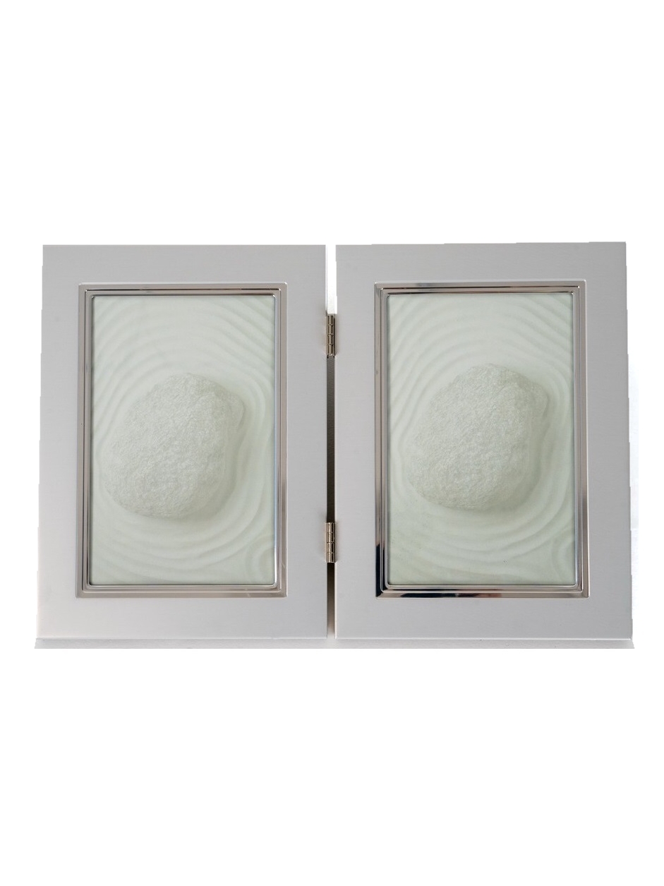 Nádherný kovový rámeček se skleněnou výplní na dvě fotografie 13x18 situované na výšku, tak jak je znázorněno na obrázku. Zadní strana semišová černá, vhodné k postavení i do prostoru. Nelze zavěsit.