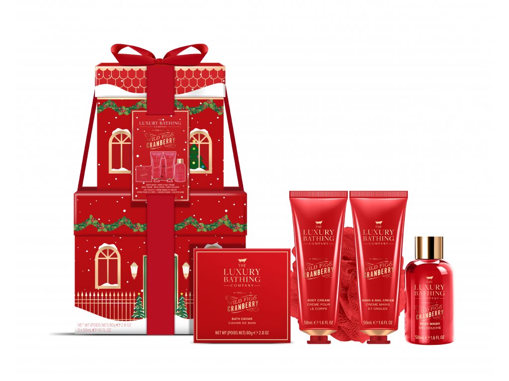 Vánoční dárková sada obsahuje sprchový gel, perličky do koupele, krém na ruce a tělový krém s nádhernou vůní fíků, brusinek a vanilky.