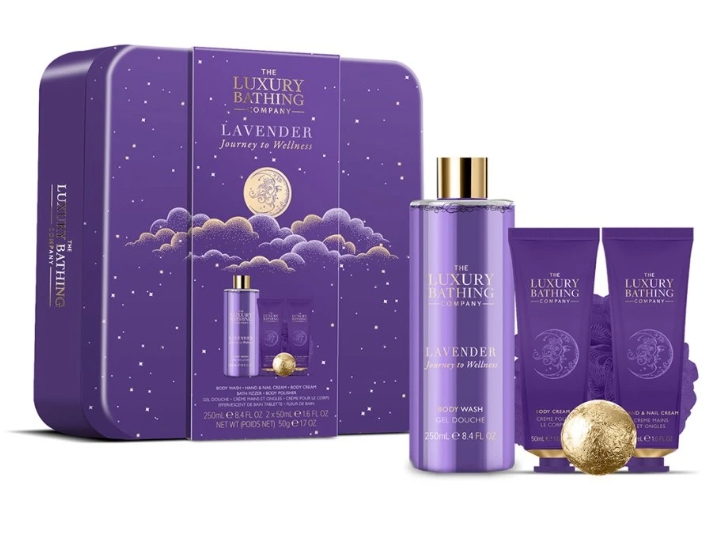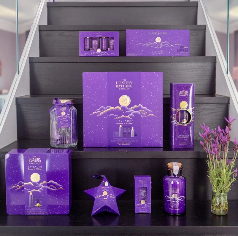 Kolekce Lavender využívá tolik známou vůni levandule a esenciální oleje, které zklidňují mysl a podporují maximální relaxaci. Každá sada je vytvořena tak, aby tělo připravila na hluboký spánek a blažený únik do světa snů. Celou kolekci provází tradiční fialová barva a zlaté detaily. Osloví všechny věkové kategorie.